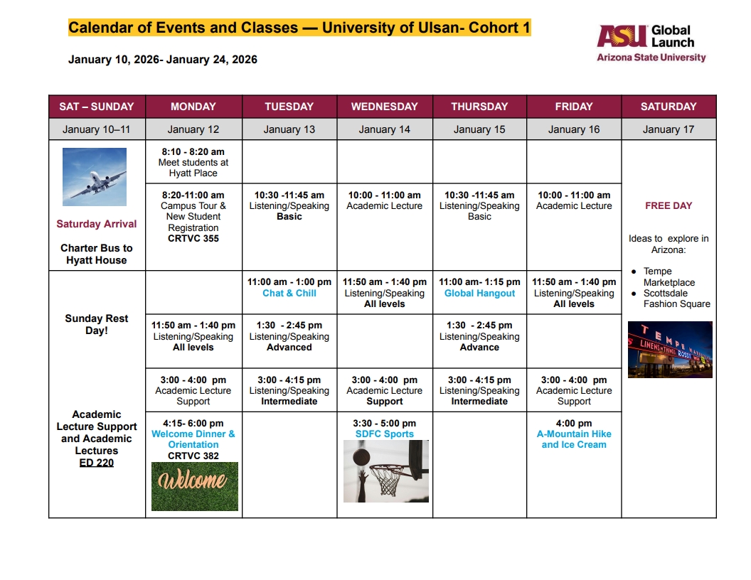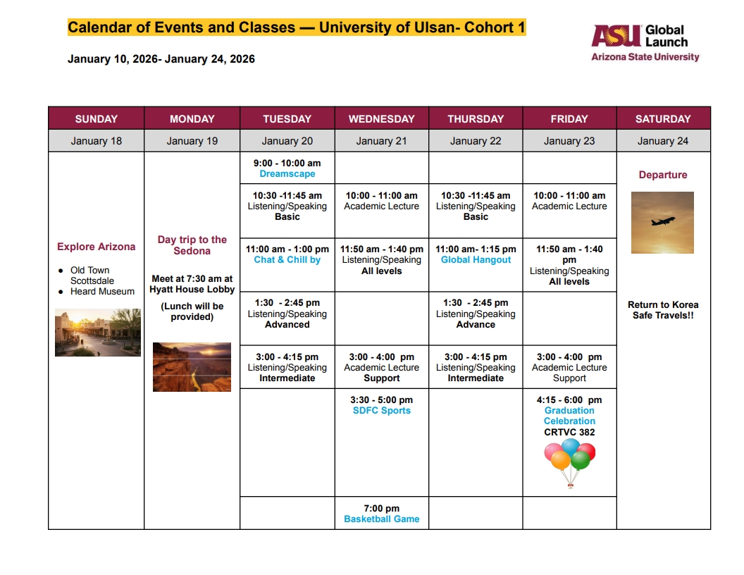 | 2025학년도 아산아너스칼리지 동계방학 해외연수(아리조나주립대학 ASU) - 1팀 | |||||
